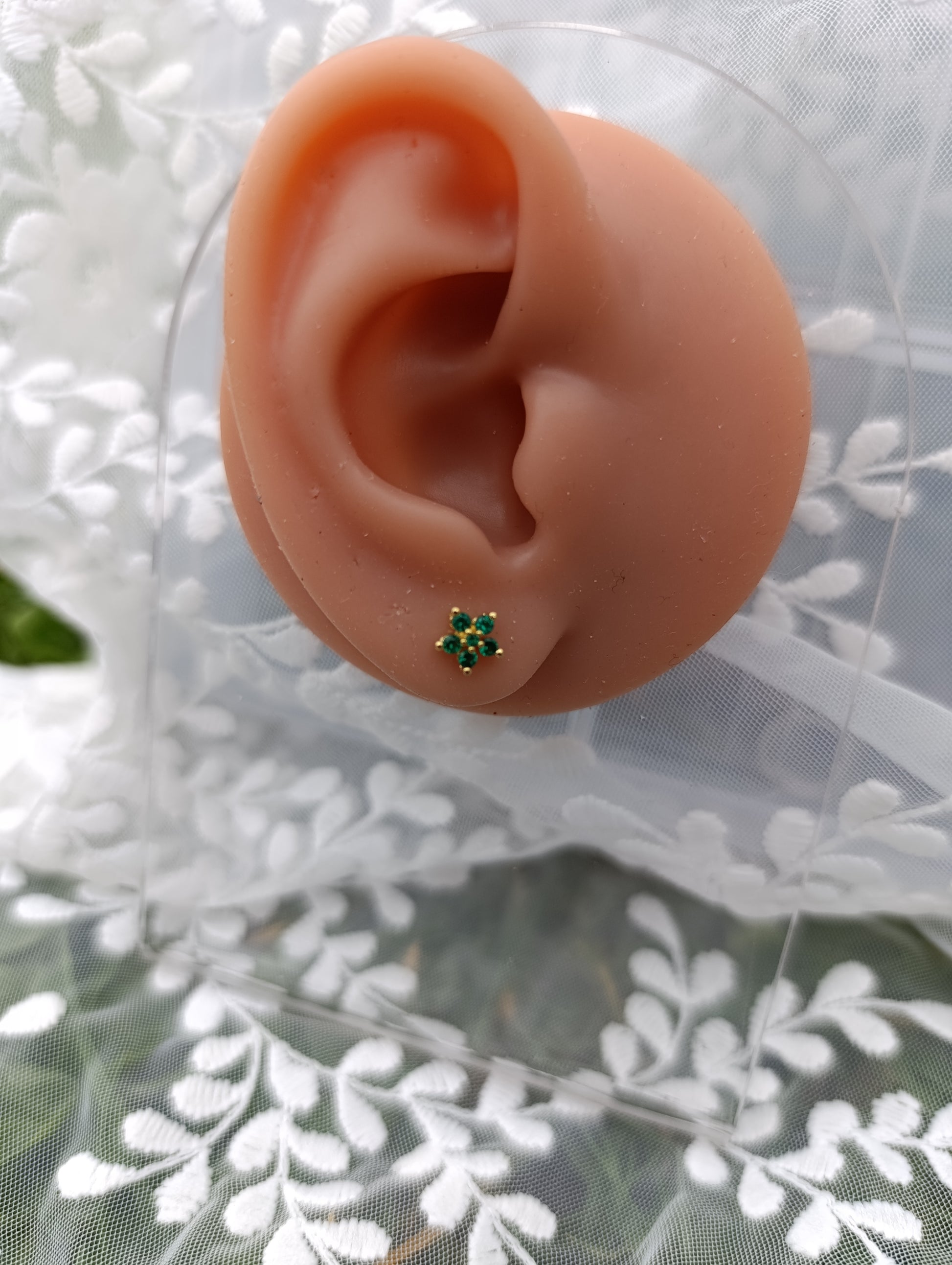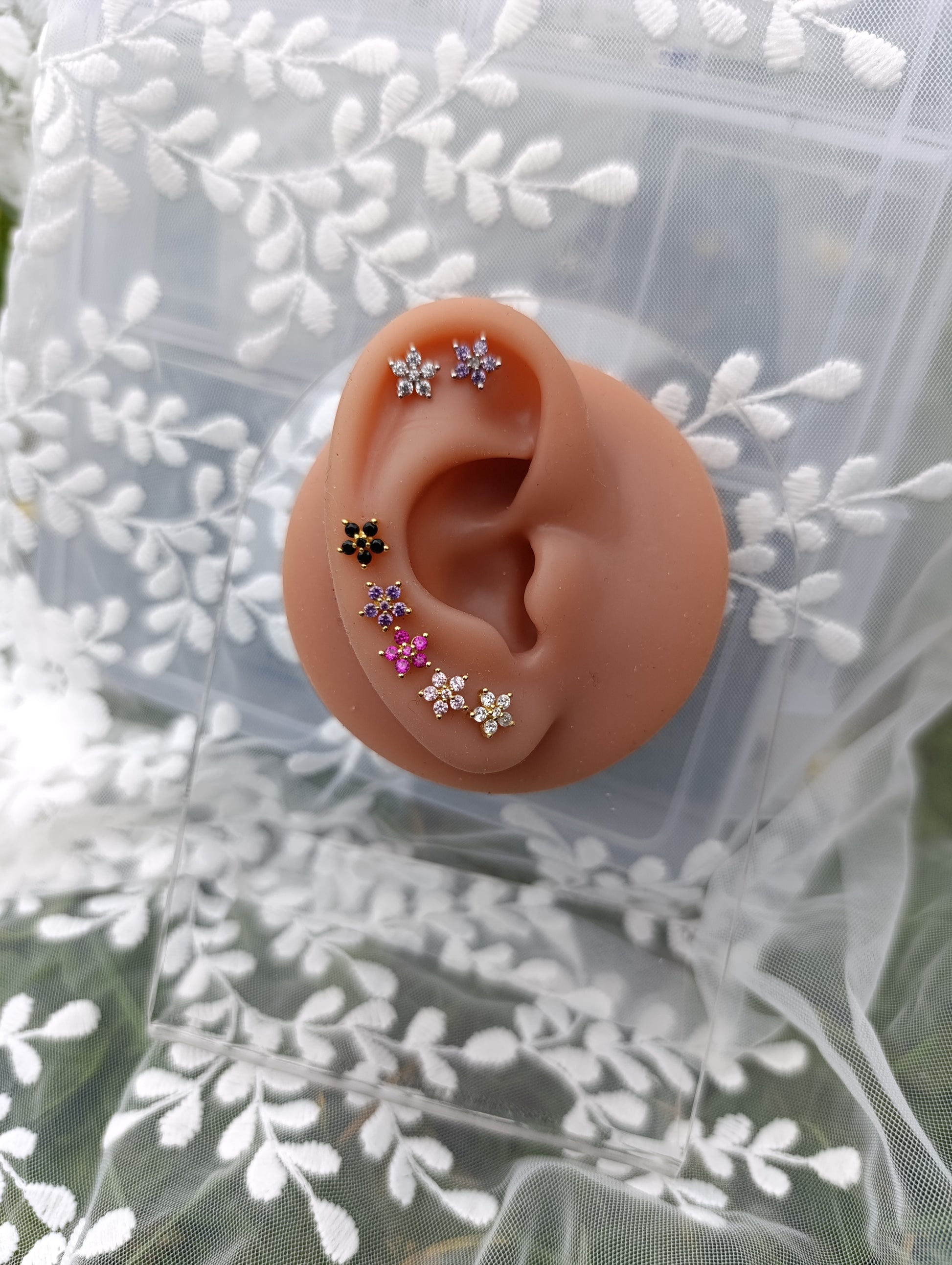 Le piercing Aurore représente une petite fleur à 5 pétales symbole de vitalité et de naissance.
