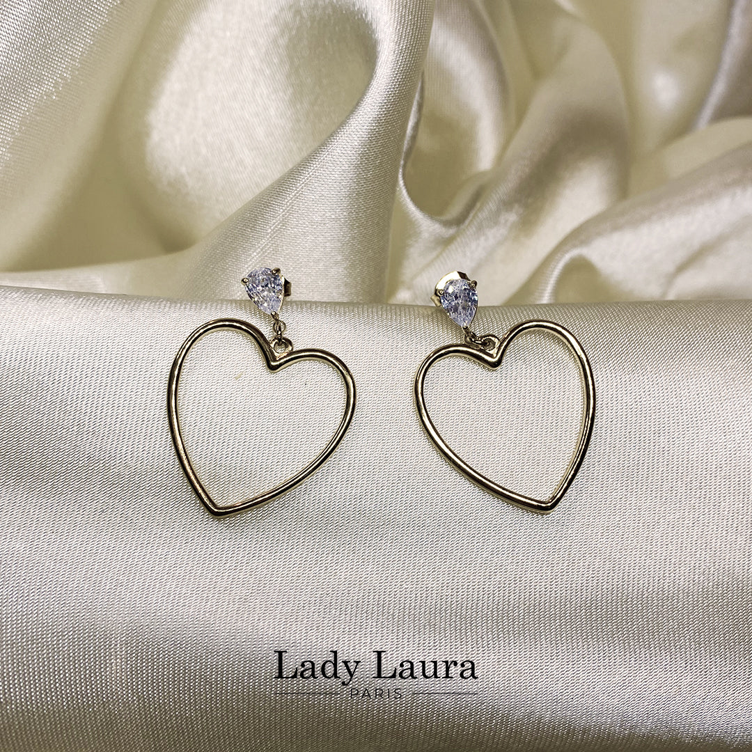 Élégantes boucles d'oreilles en forme de cœur, inspirées par Lady Capucine elle-même. Ajoutez une touche de grâce et de sophistication à votre tenue avec ces bijoux uniques. Un cadeau parfait pour votre être cher ou pour vous-même.