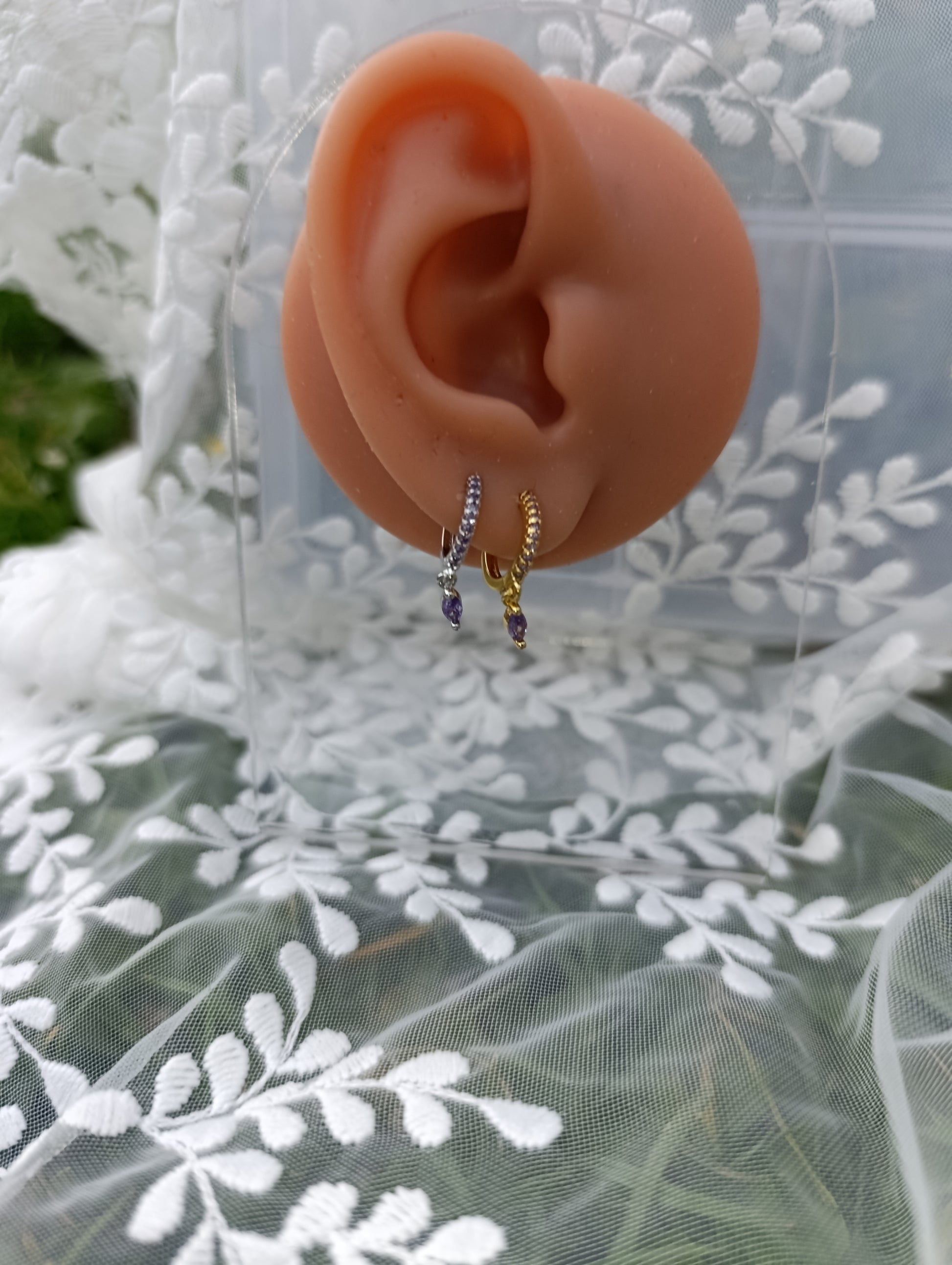 Lady Louna est une magnifique MONOBOUCLE créole surmonter de zircon et orné en bas d'une magnifique petite goutte en zircon.