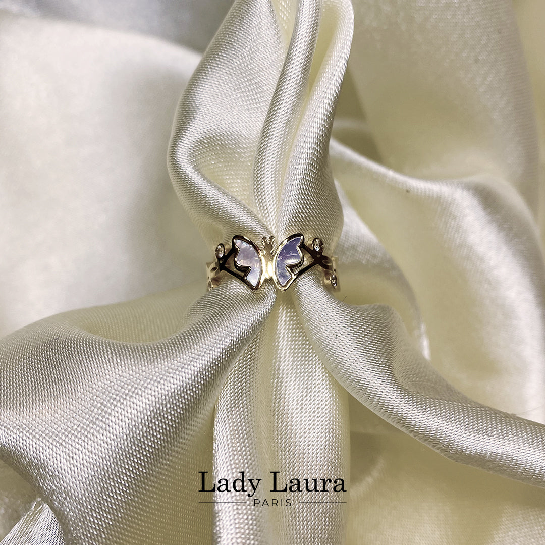 Vivez une expérience de beauté exquise avec la bague Lady Mariyam. Inspirée par la délicatesse du papillon nacré, cette bague incarne l'élégance et la féminité. Ajoutez une touche de grâce à votre style avec Lady Mariyam.