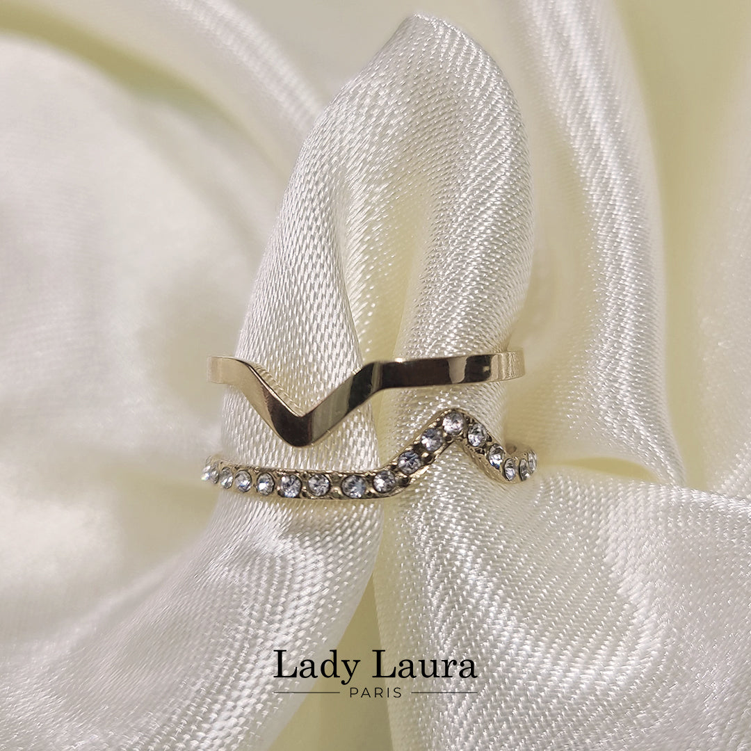 Lady Rébecca est un mélange parfait de luxe et d'élégance. Sublimez votre look avec ces magnifiques bagues à double anneau. Sa forme élégante et riche en détails le rendra incontournable pour toutes vos tenues de soirée.